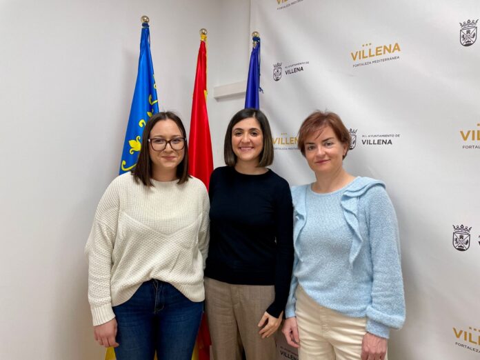 La concejala Alba Laserna, acompañada por la directora del Centro Alzheimer de Villena, Laura Marco, y la terapeuta, Belén Amorós, han presentado los resultados de estos talleres.