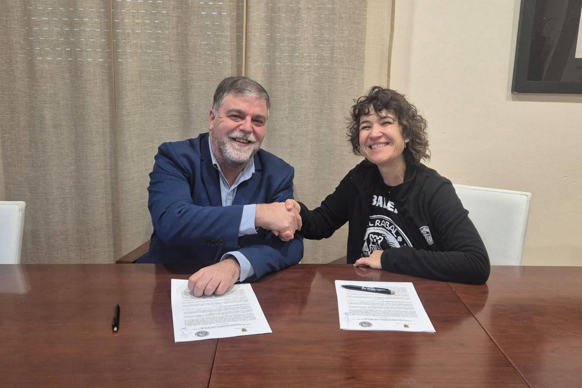 El alcalde, Fulgencio Cerdán, y la presidenta de la Asociación de Vecinos de El Rabal, Luisa Aroca, firmaron el convenio de colaboración para la celebración de las próximas Fiestas del Medievo.