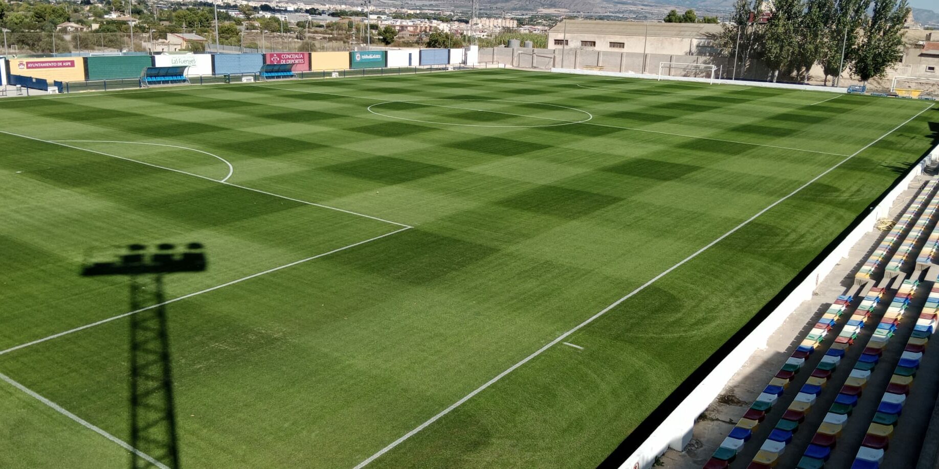 La Concejalía de Deportes de Aspe ha recuperado el césped natural en el campo de fútbol de Las Fuentes. Tras los trabajos realizados de resiembra, realizados en el mes de octubre, el nuevo césped presenta un aspecto espectacular.
