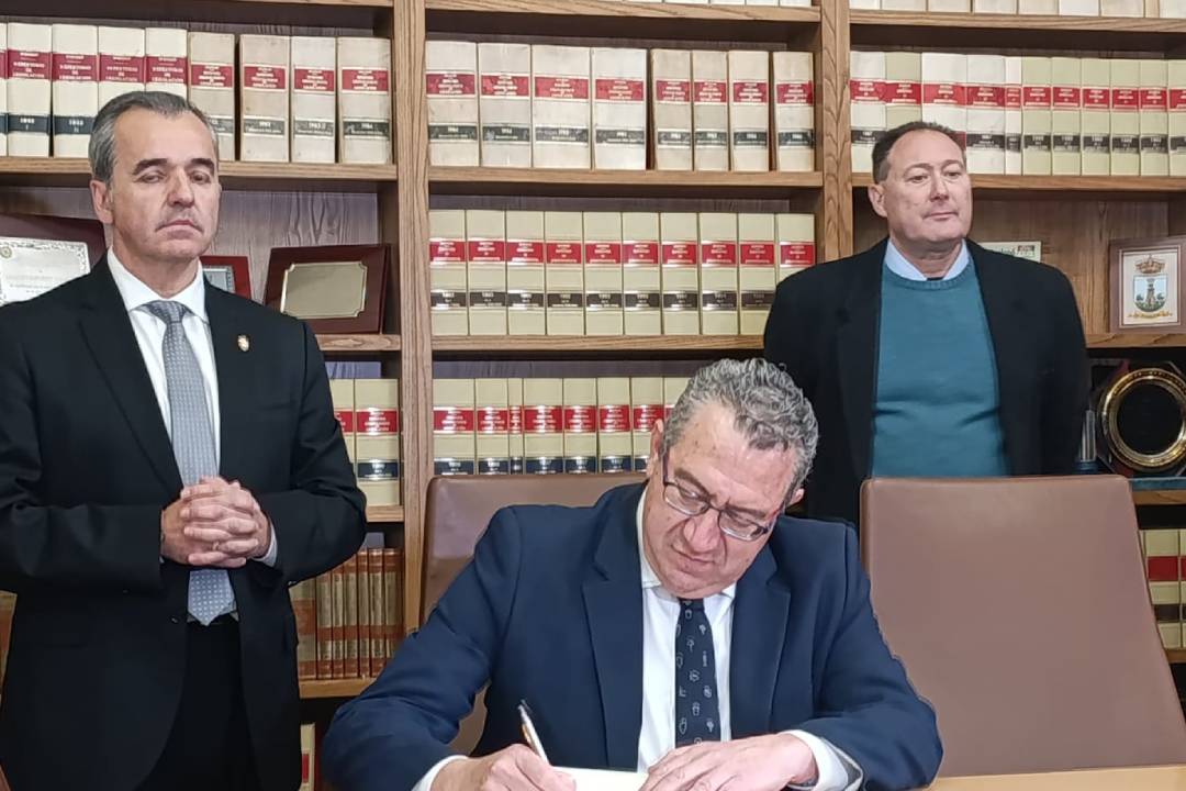 La visita ha comenzó en el Ayuntamiento, donde Pérez firmó en el Libro de Honor del Consistorio acompañado por miembros de la corporación municipal.