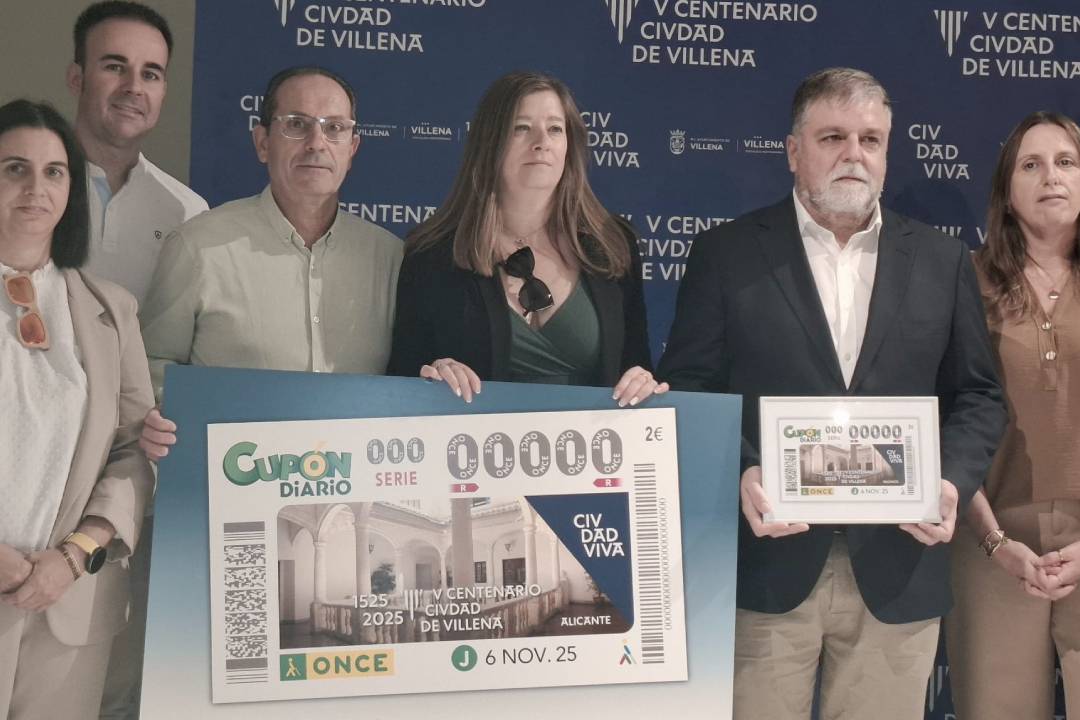 El jueves 6 de noviembre el V Centenario de la Ciudad de Villena protagoniza el cupón de la ONCE y cinco millones de cupones difundirán por toda España este importante evento de la localidad.