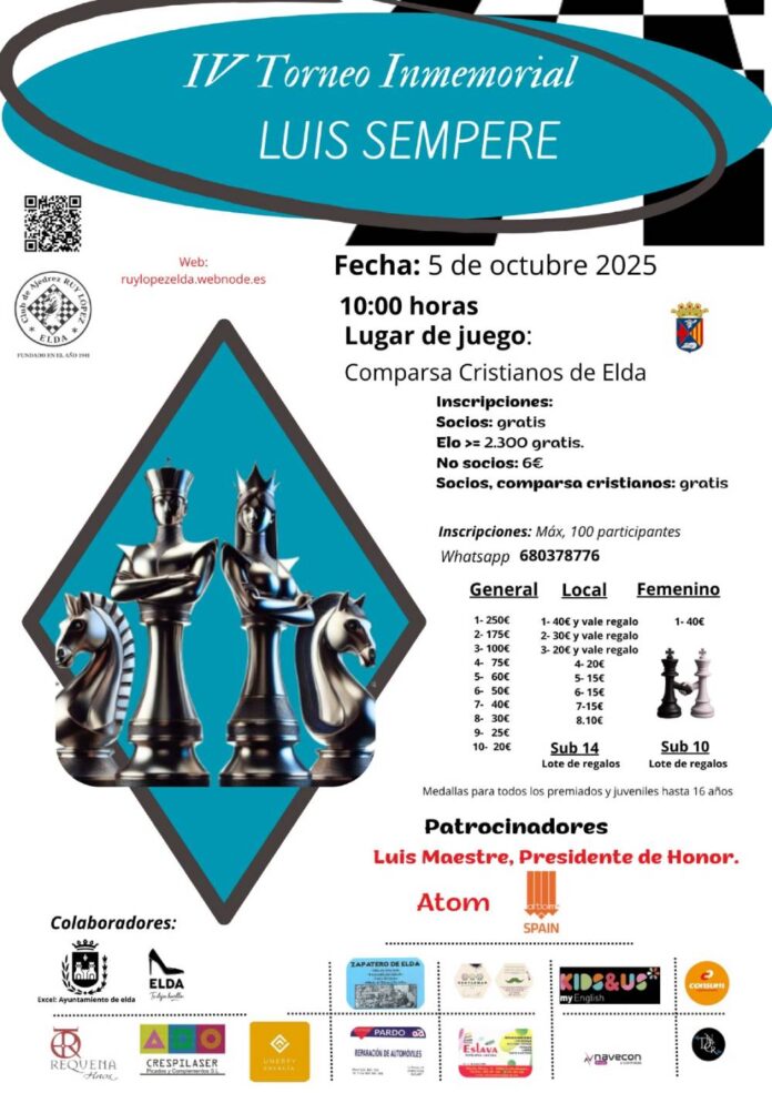 La organización estará a cargo del Club Ajedrez “Ruy López” y sirve para homenajear a Luis Sempere Payá, miembro del club y primer fallecido por Covid-19 en la comarca.