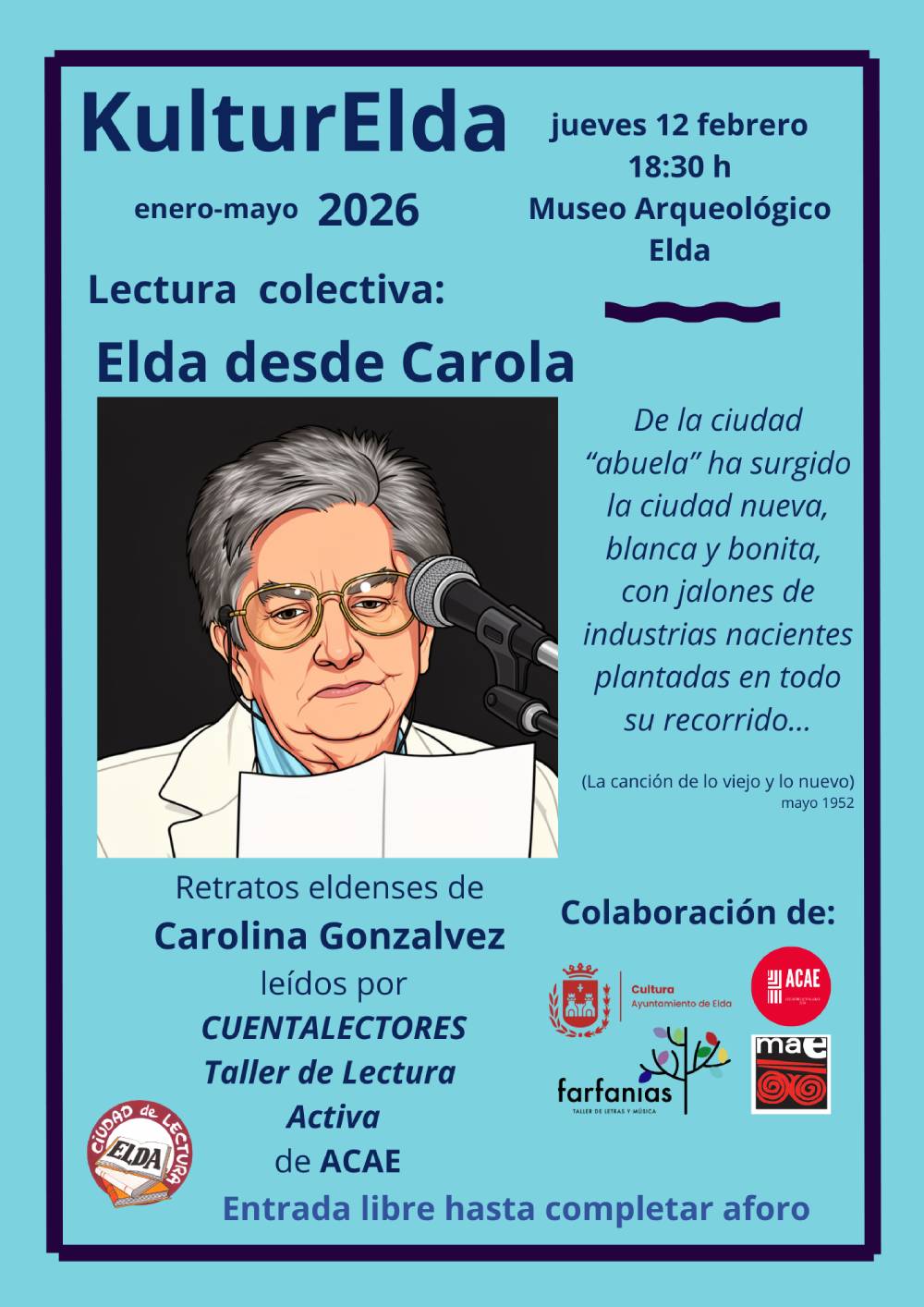 La sala de exposiciones del Museo Arqueológico acoge, hoy jueves día 12 a las 18:30 horas, un encuentro literario dedicado a la obra en prosa de la poeta eldense Carola Gonzálvez.