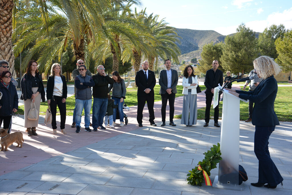 La portavoz de Vox en el Ayuntamiento de Elda, Paqui Vicente, inició el acto rememorando la importancia de mantener viva la memoria de los caídos por el terrorismo, especialmente en una época donde, según sus palabras, «las víctimas son olvidadas y los asesinos son blanqueados por un gobierno que les invita a formar parte de nuestros órganos legisladores».