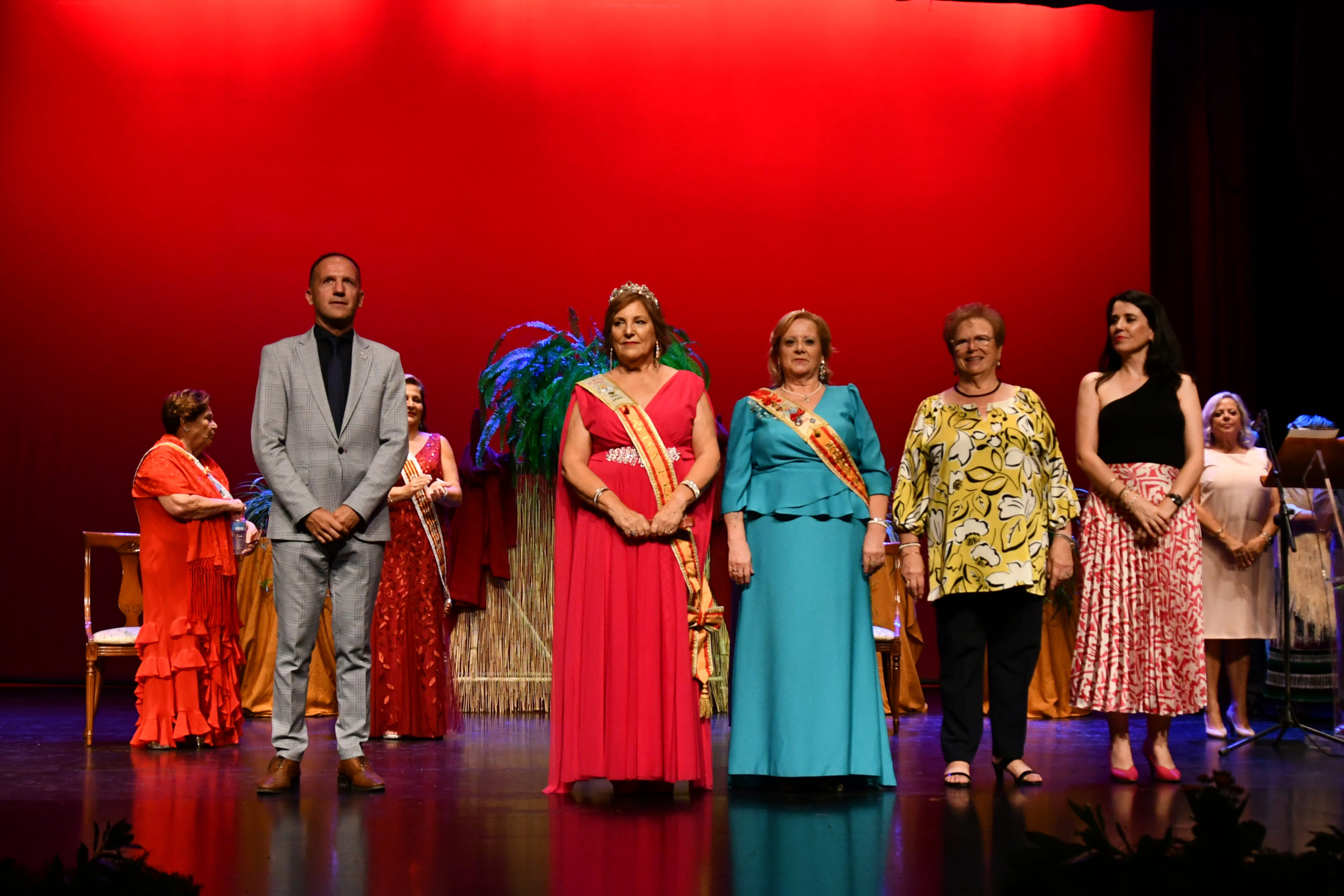 El acto, conducido por Reme Carbonell y Esteban Hernández, se inició homenajeando a la reina saliente, Lola Carbonell, y a sus damas, Beatriz Sánchez López y Carmen Pérez Pérez, que recibieron un cariñoso aplauso del público asistente.