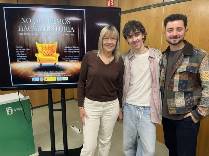La Concejalía de Juventud, en colaboración con la Concejalía de Igualdad y el patrocinio del Ministerio de Igualdad, ha organizado la representación de la obra teatral “No queremos hacer historia”, obra, escrita y dirigida por Mercé Galiana y José Vera.