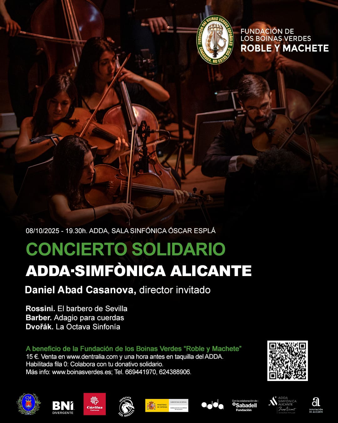 La Fundación de los Boinas Verdes “Roble y Machete” ha organizado dos actos de carácter benéfico, en los que los grandes protagonistas serán la Orquesta ADDA Simfònica Alicante y el escritor Lorenzo Silva, los días 8 y 15 de octubre.