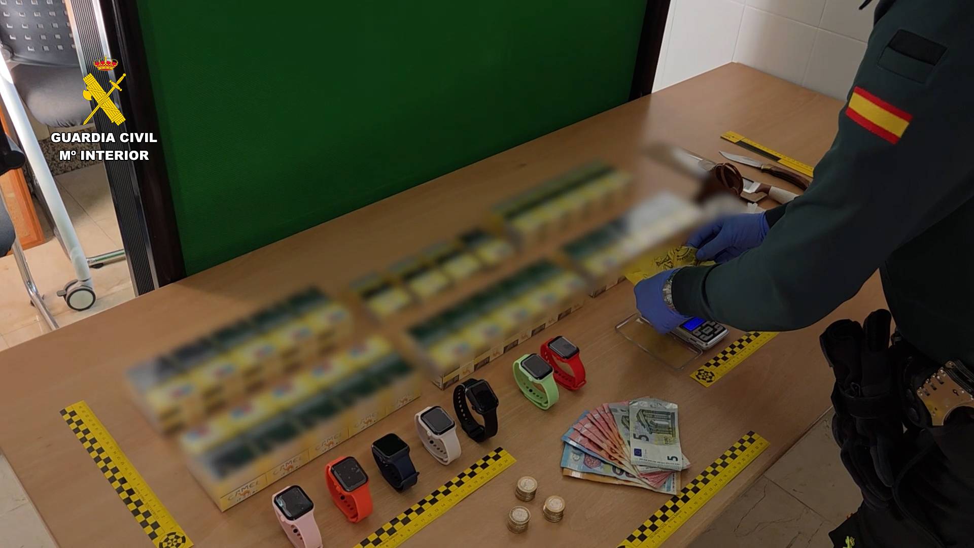 Las actuaciones han sido desarrolladas por las Áreas de Prevención de la Delincuencia y Seguridad Ciudadana del Puesto Principal de Novelda y han permitido la aprehensión de diversas sustancias estupefacientes, tabaco de contrabando, armas blancas y otros efectos relacionados con la actividad delictiva.
