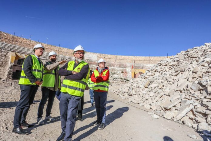 El alcalde Rubén Alfaro y el concejal de Espacio Público, José Antonio Amat, acompañados por los técnicos, han visitado las obras de la Plaza de Toros que supondrán la conversión del coso en un espacio multiusos abierto a la ciudadanía y donde la cultura cobrara protagonismo, pudiendo albergar conciertos, presentaciones y galas festeras así como eventos donde los protagonistas sean los y las eldenses.