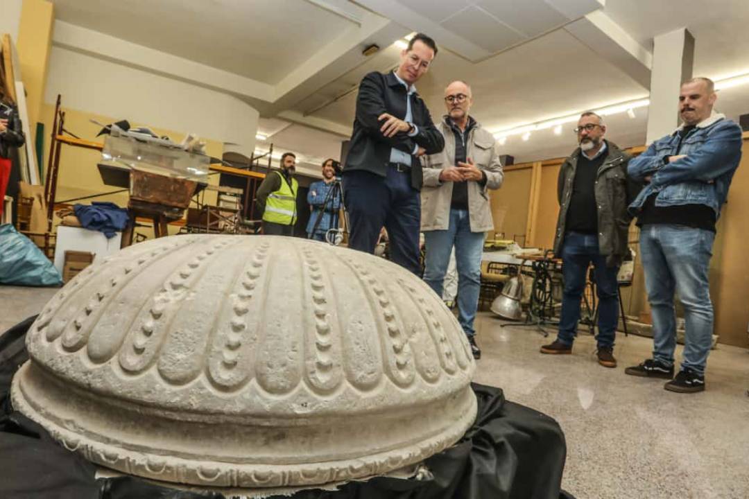 Rubén Alfaro señaló que “a falta del estudio en profundidad de la pieza, los expertos nos indican que es lógico pensar que, por sus dimensiones, su decoración y su lugar de hallazgo estemos ante una de las pilas o la pila de agua bendita existentes en la entrada principal de la antigua iglesia de Santa Ana, destruida durante la Guerra Civil”.