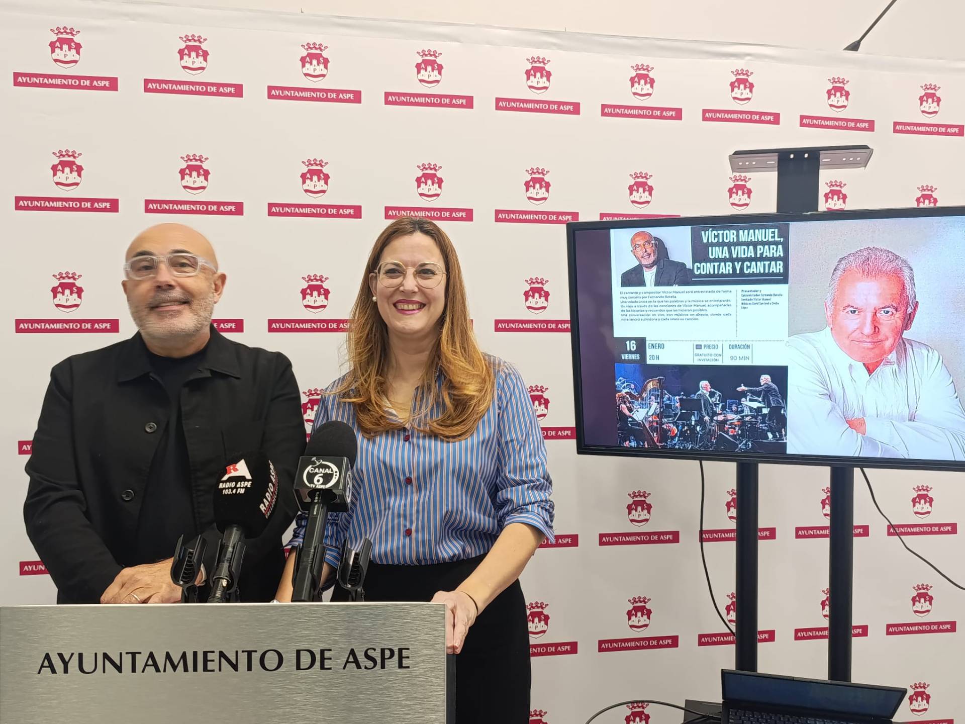 La concejala de Cultura, Rosa Ruiz, anunció la próxima visita a Aspe del cantautor Víctor Manuel, quien llegará al municipio de la mano del aspense Fernando Botella para ofrecer el evento Una vida que contar y cantar.